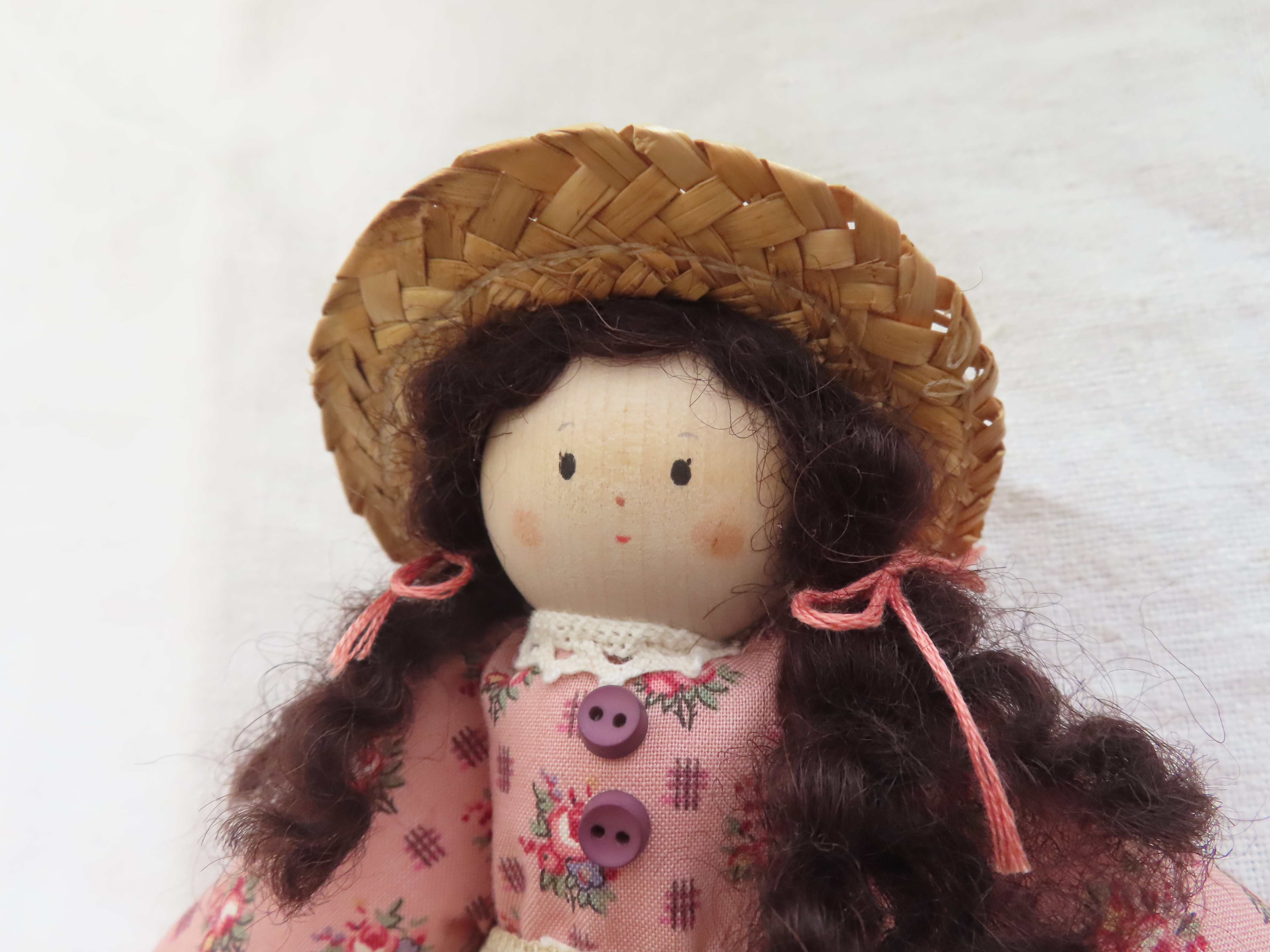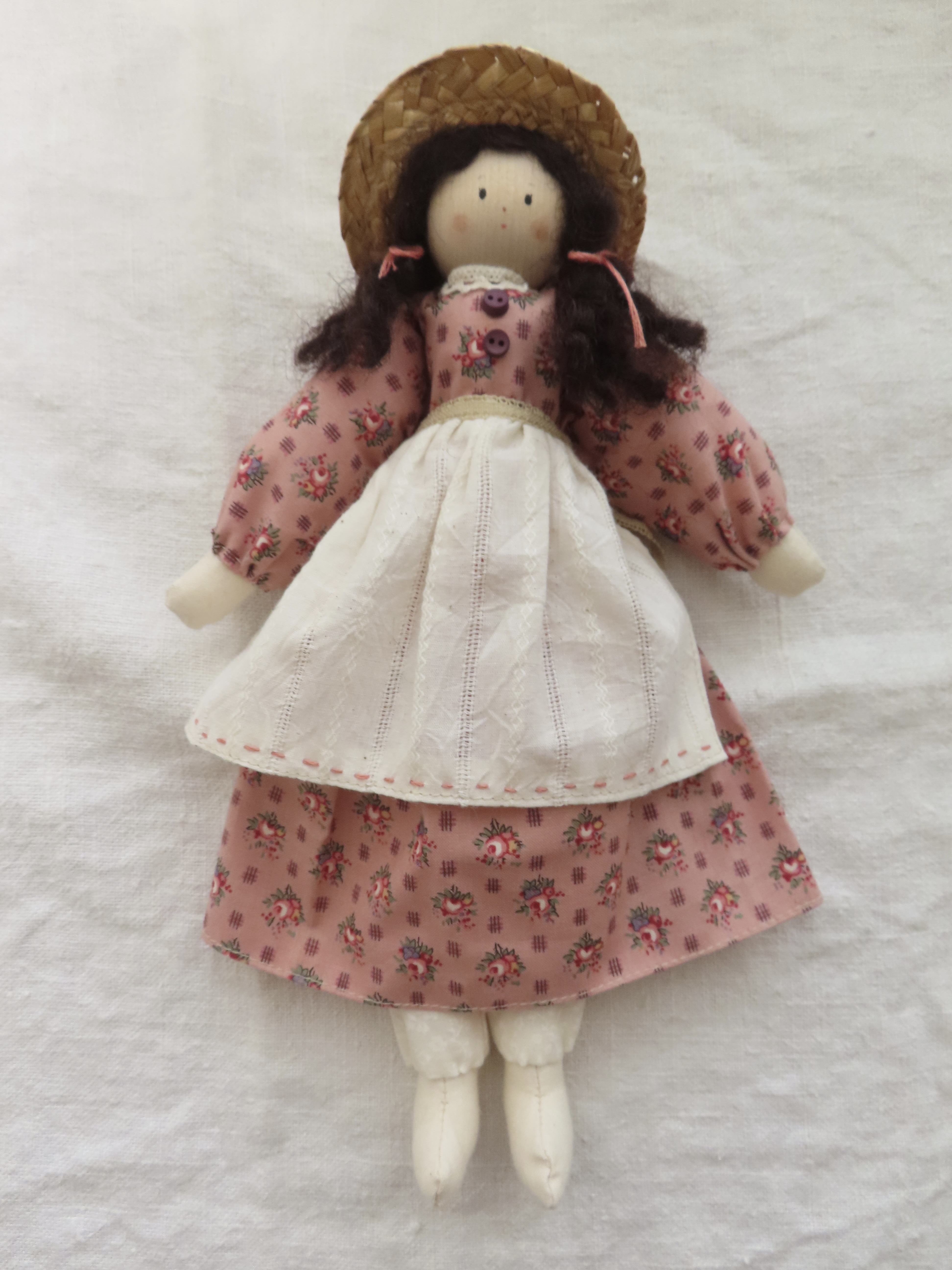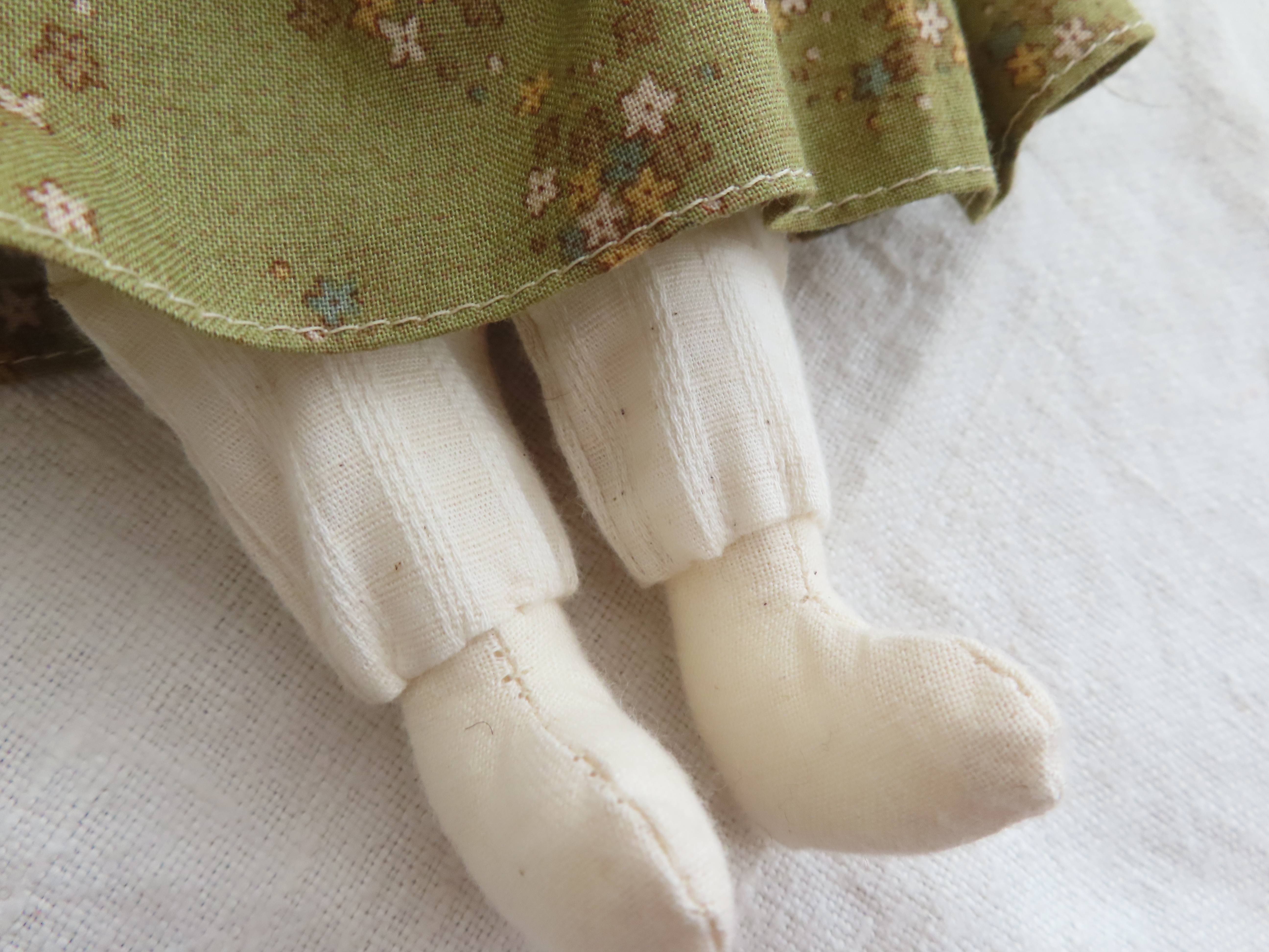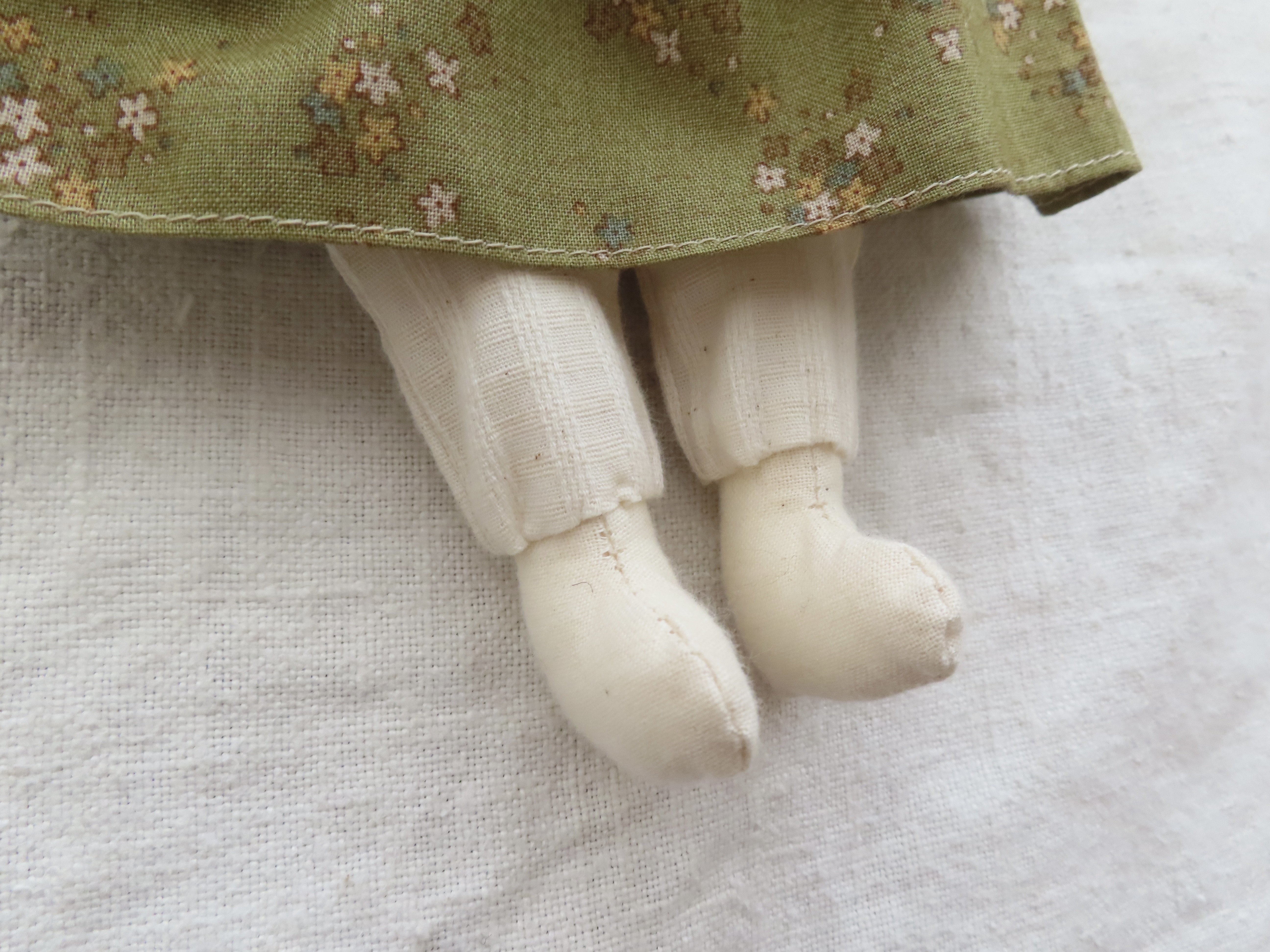 お人形の腕や足は軽く動かすことができます。(膝の部分も曲がるように作っています。)