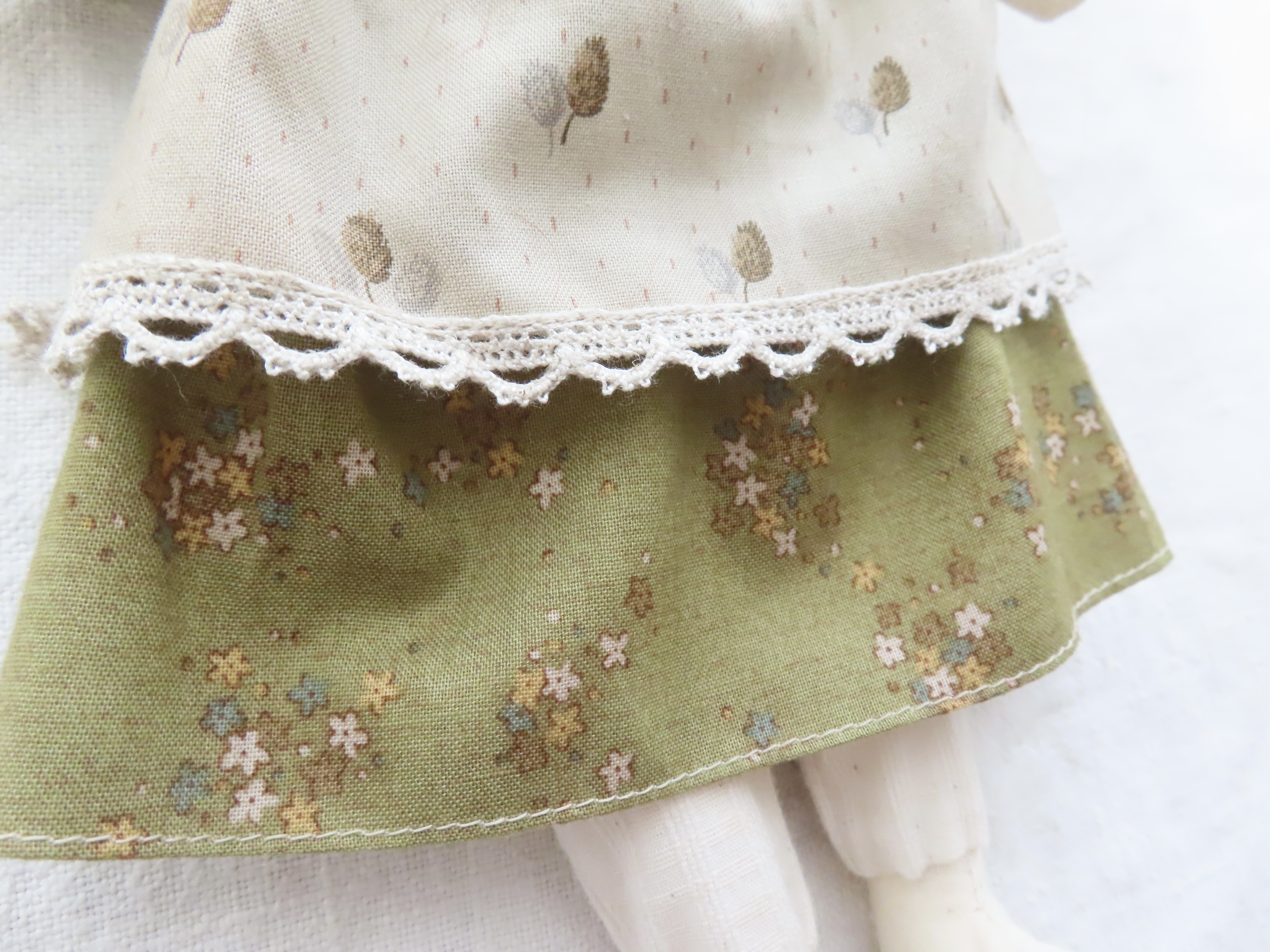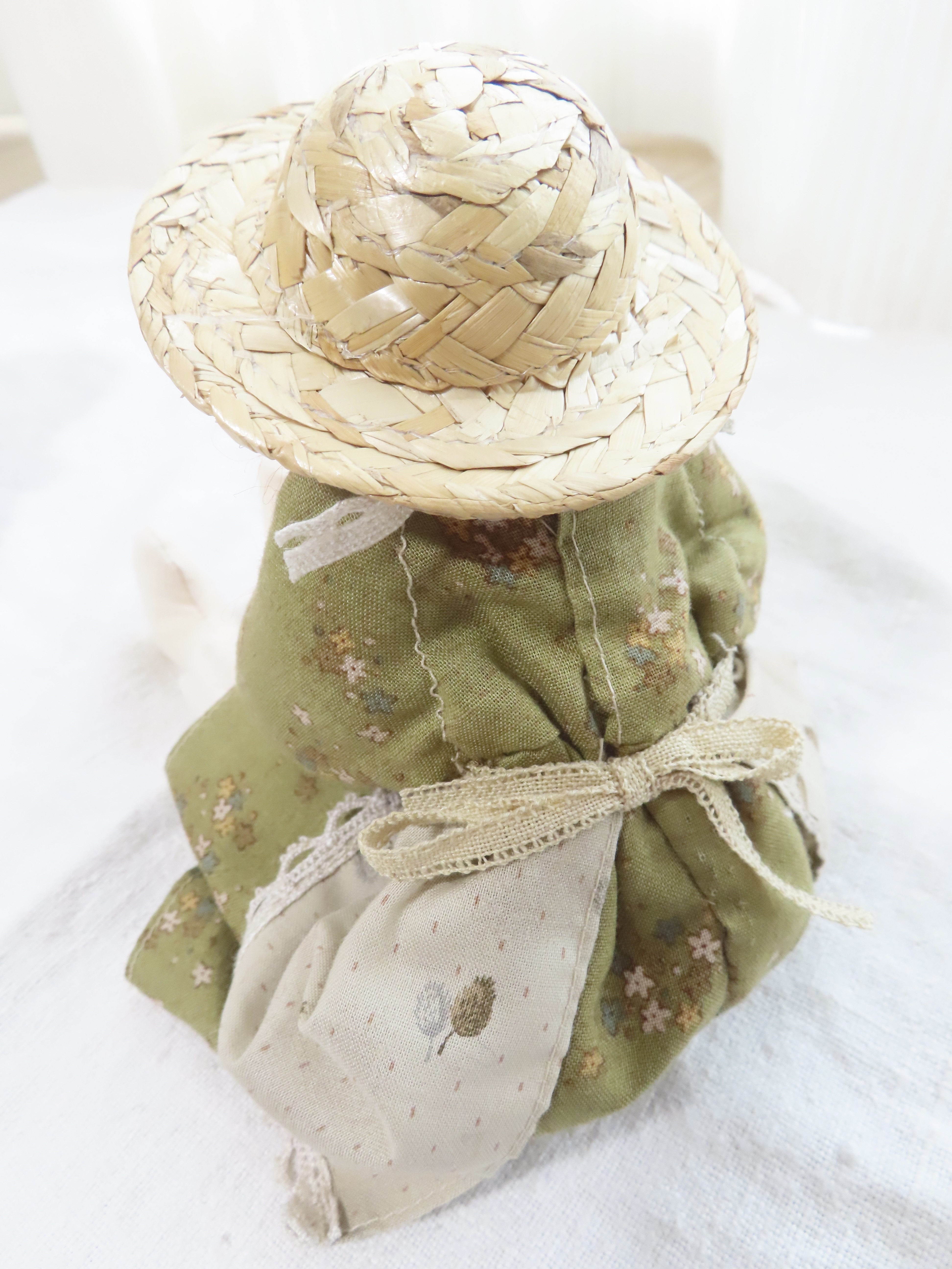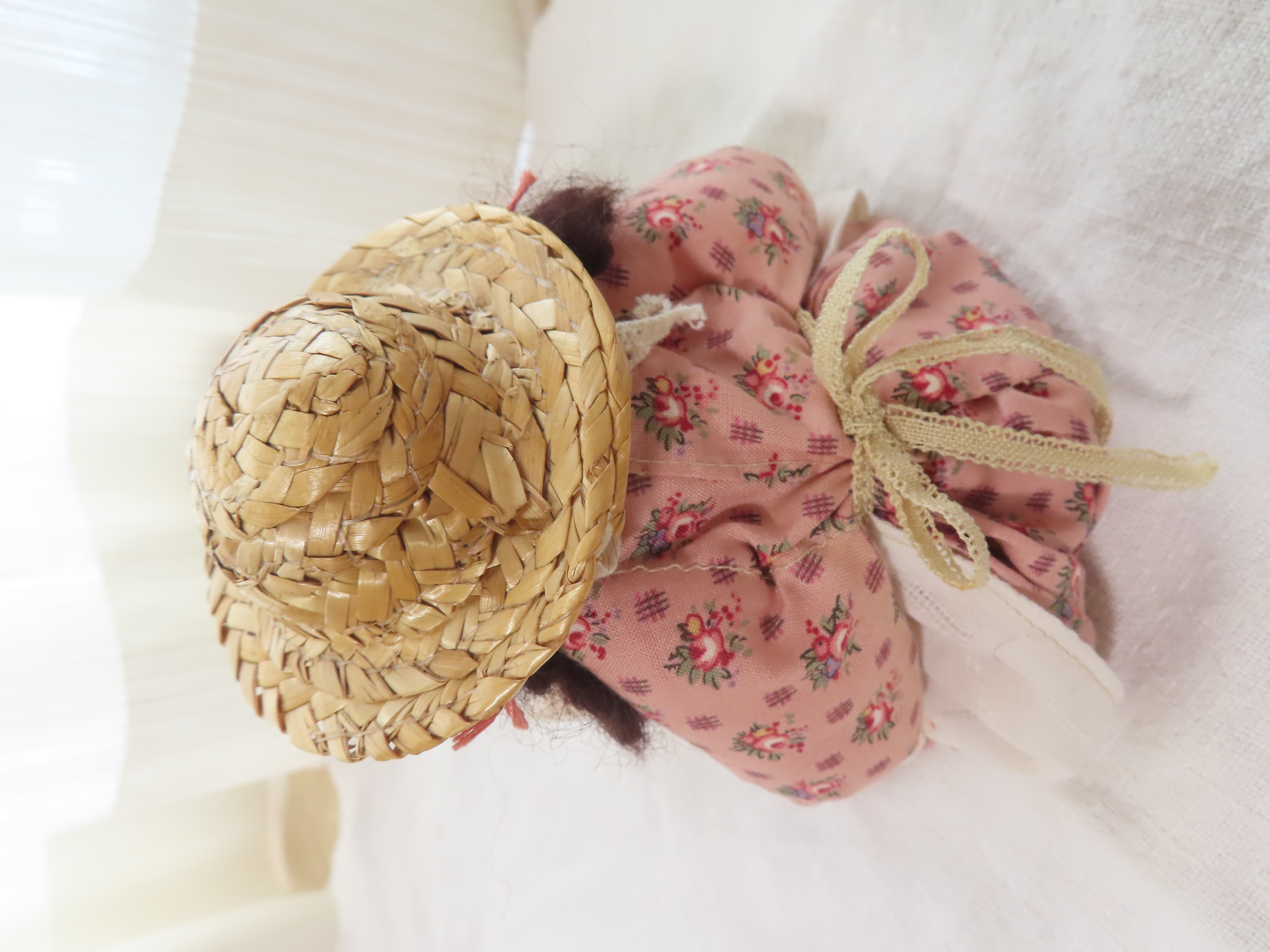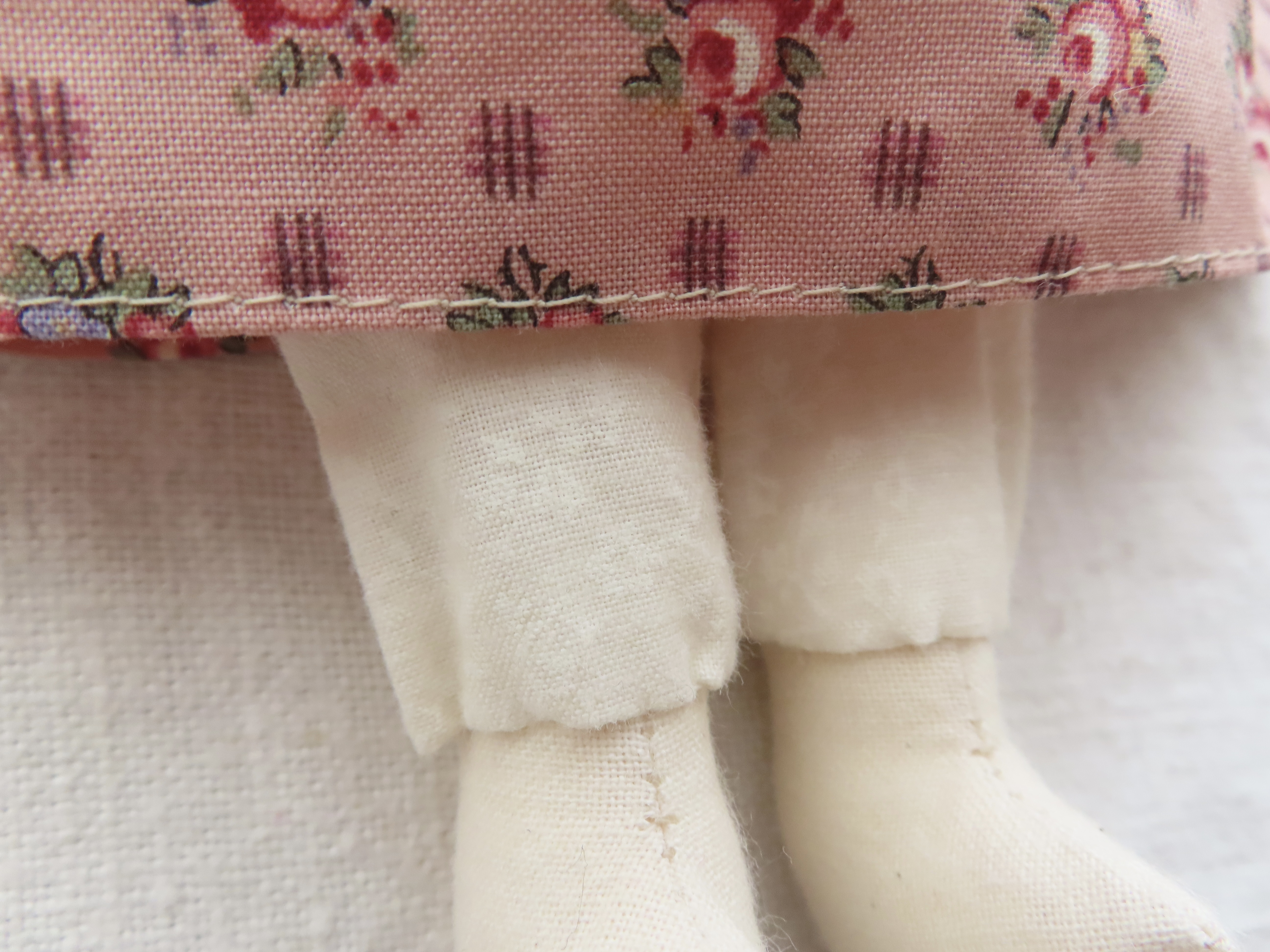お人形の腕や足は軽く動かすことができます。(膝の部分も曲がるように作っています。)