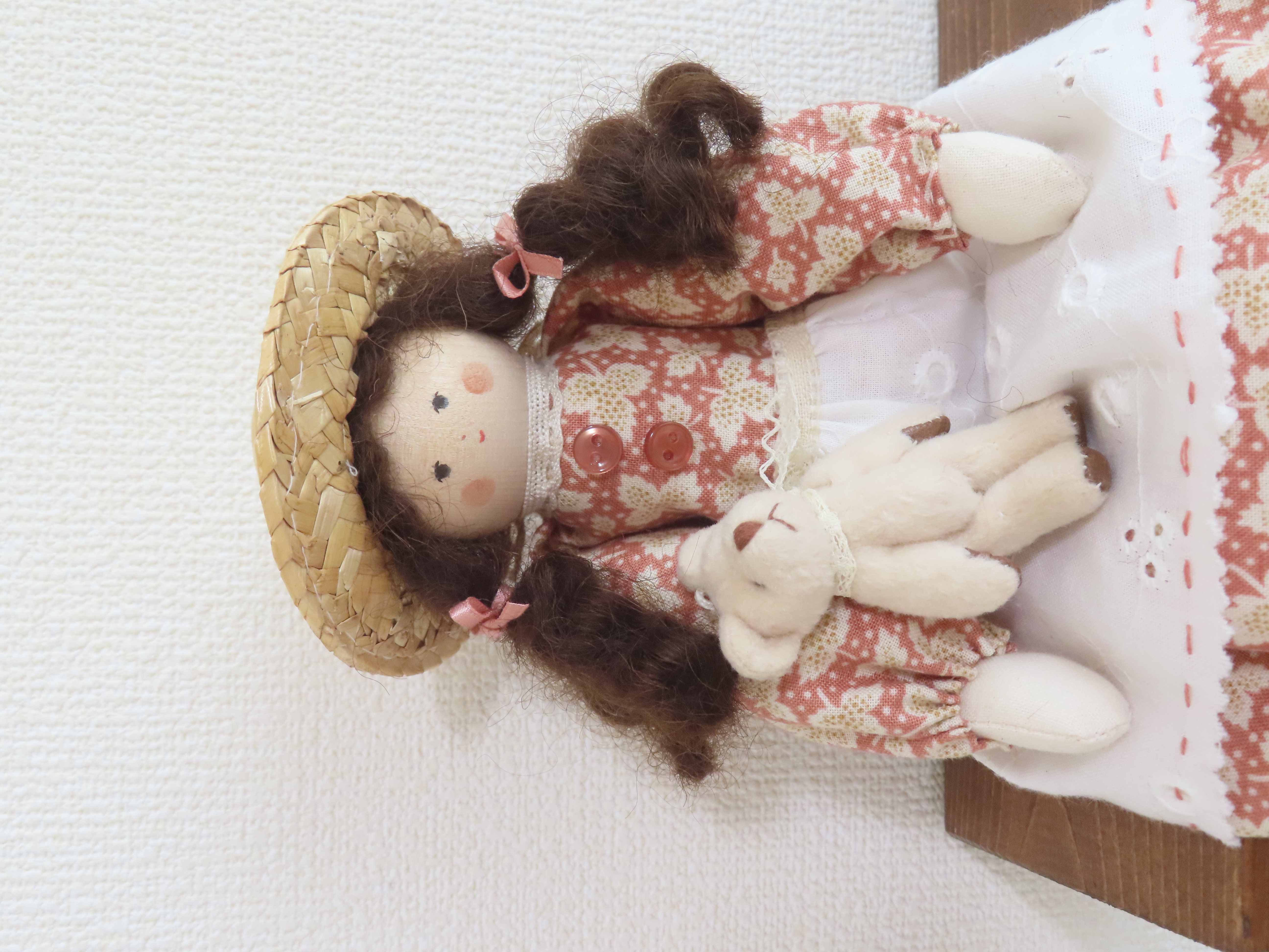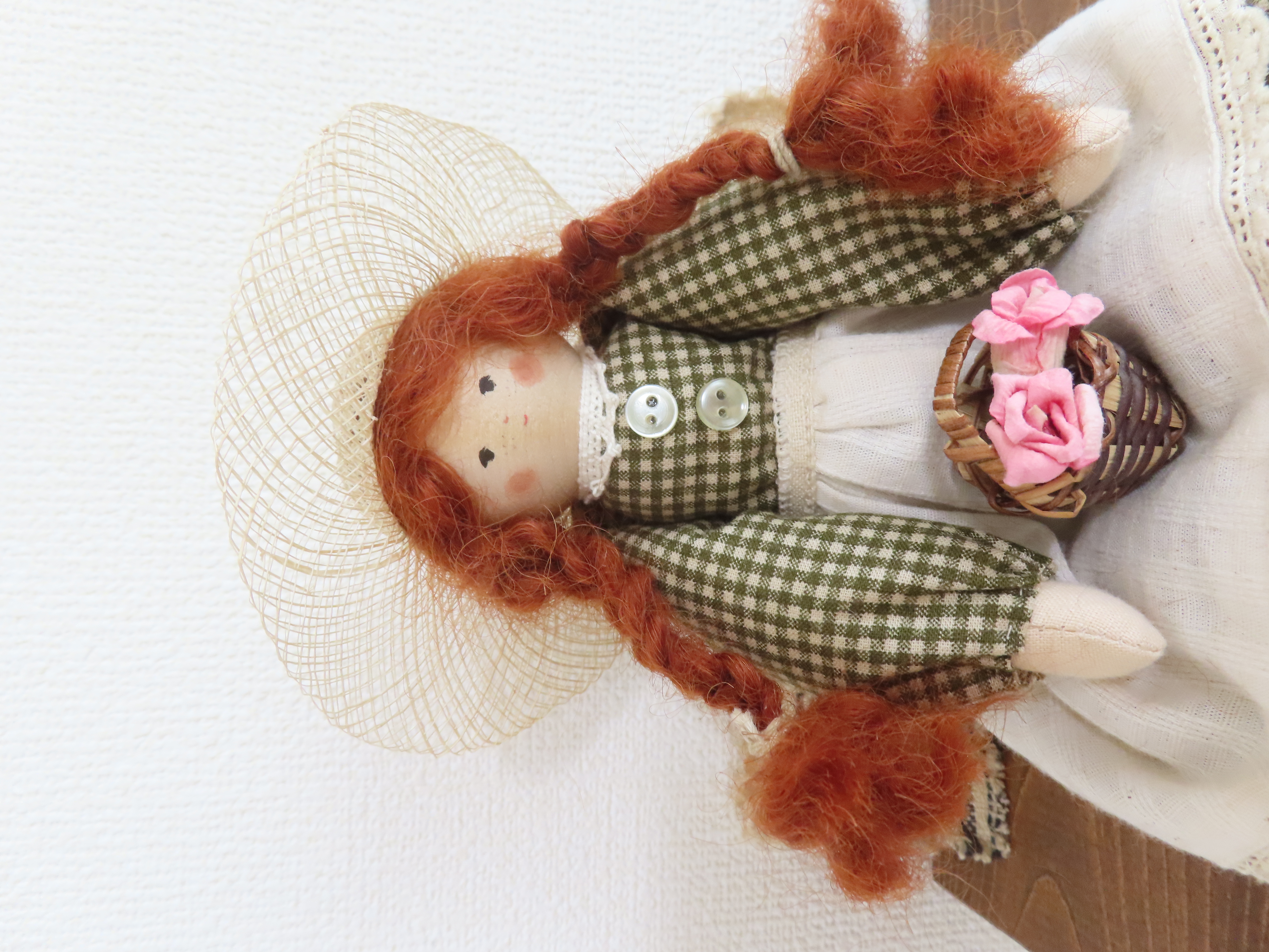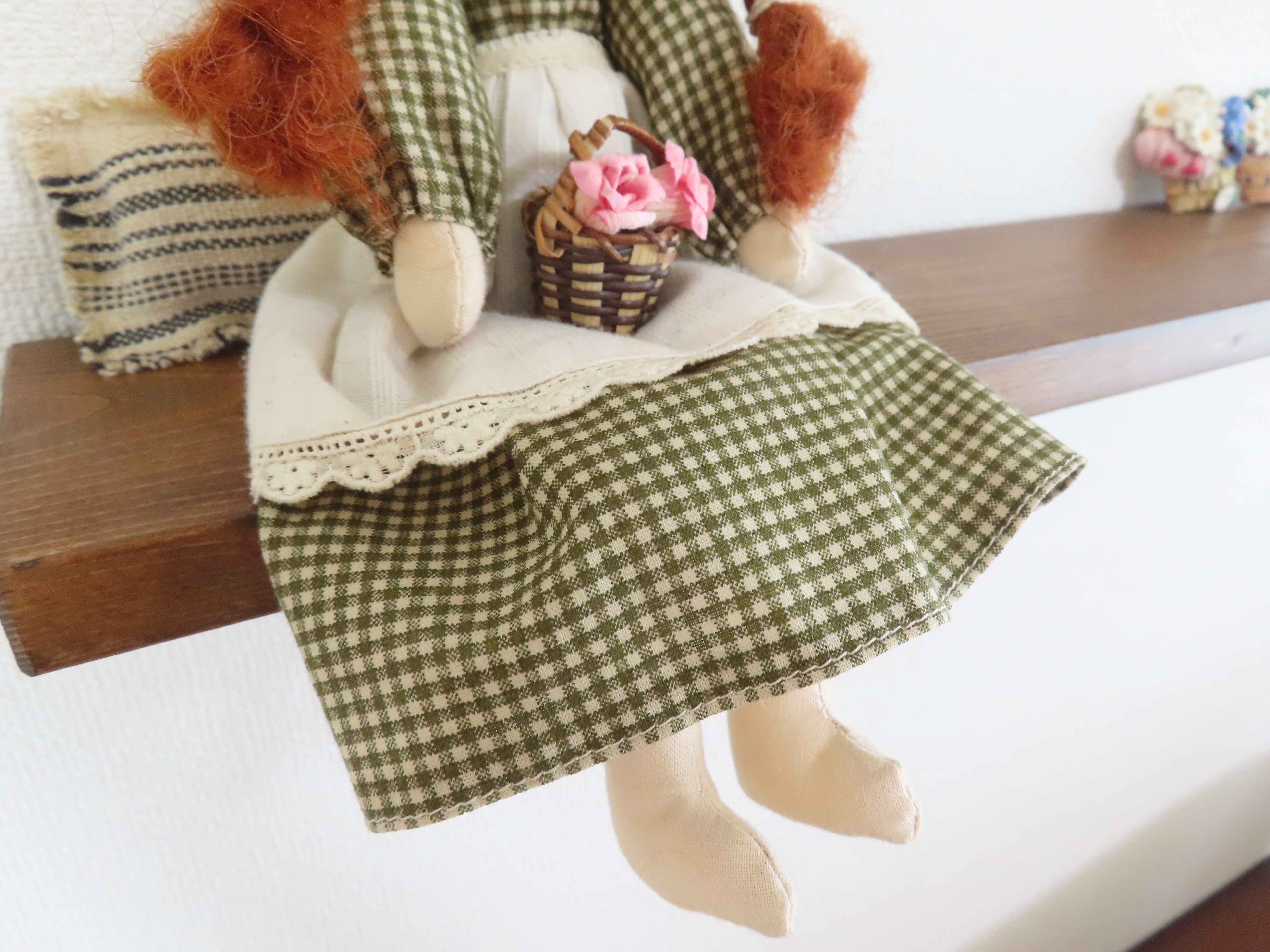 お人形の腕や足は軽く動かすことができます。(膝の部分も曲がるように作っています。)