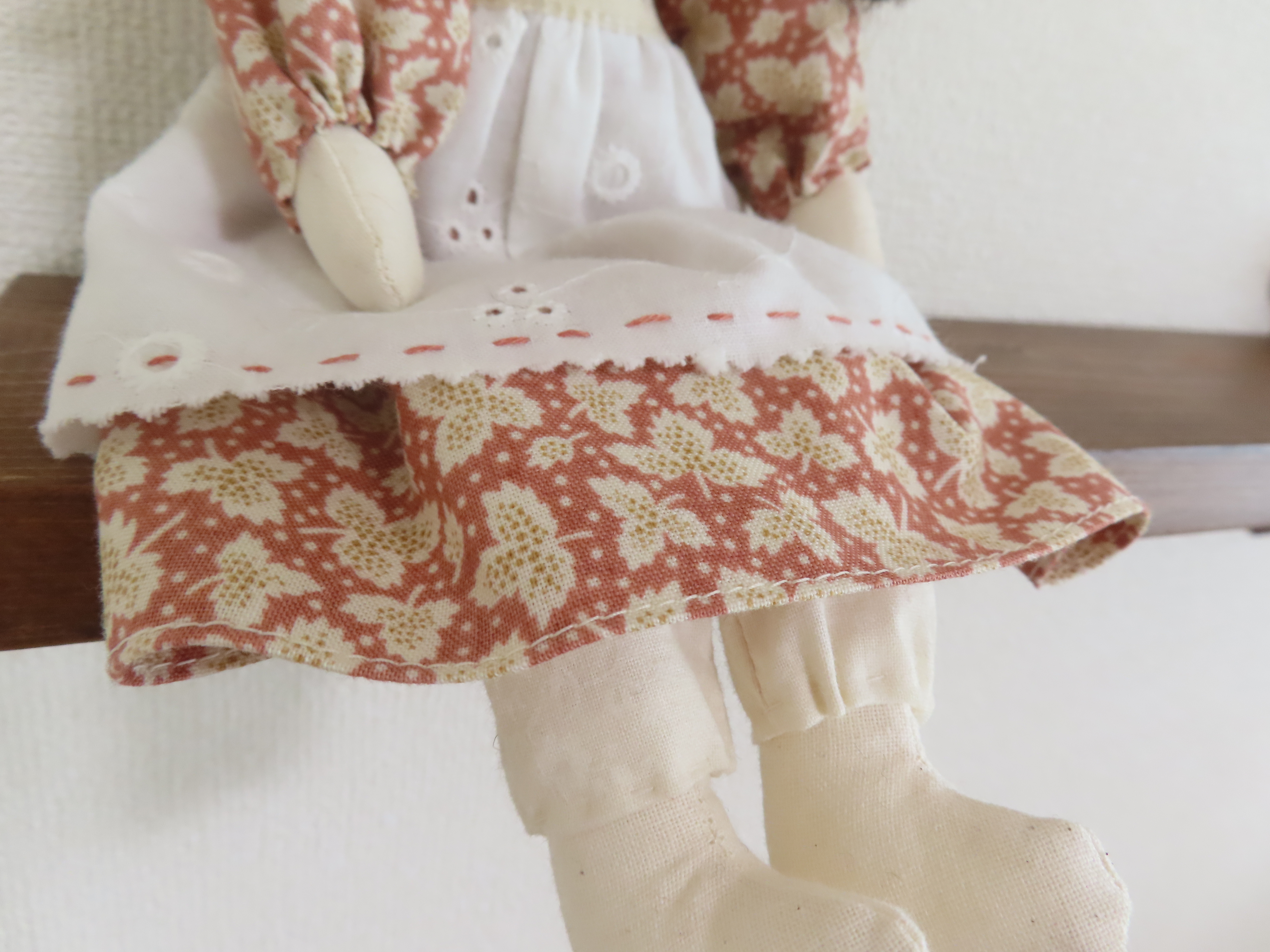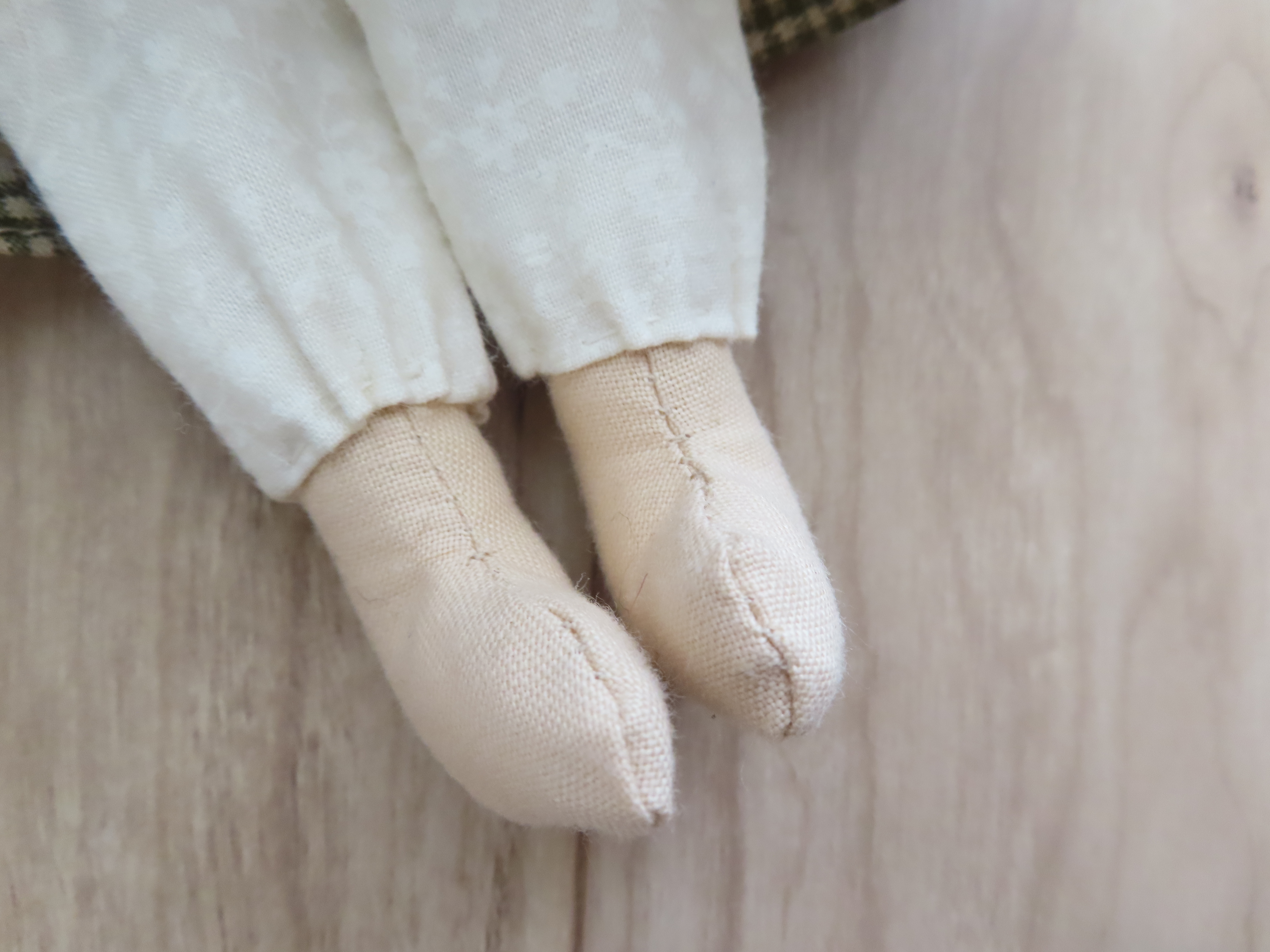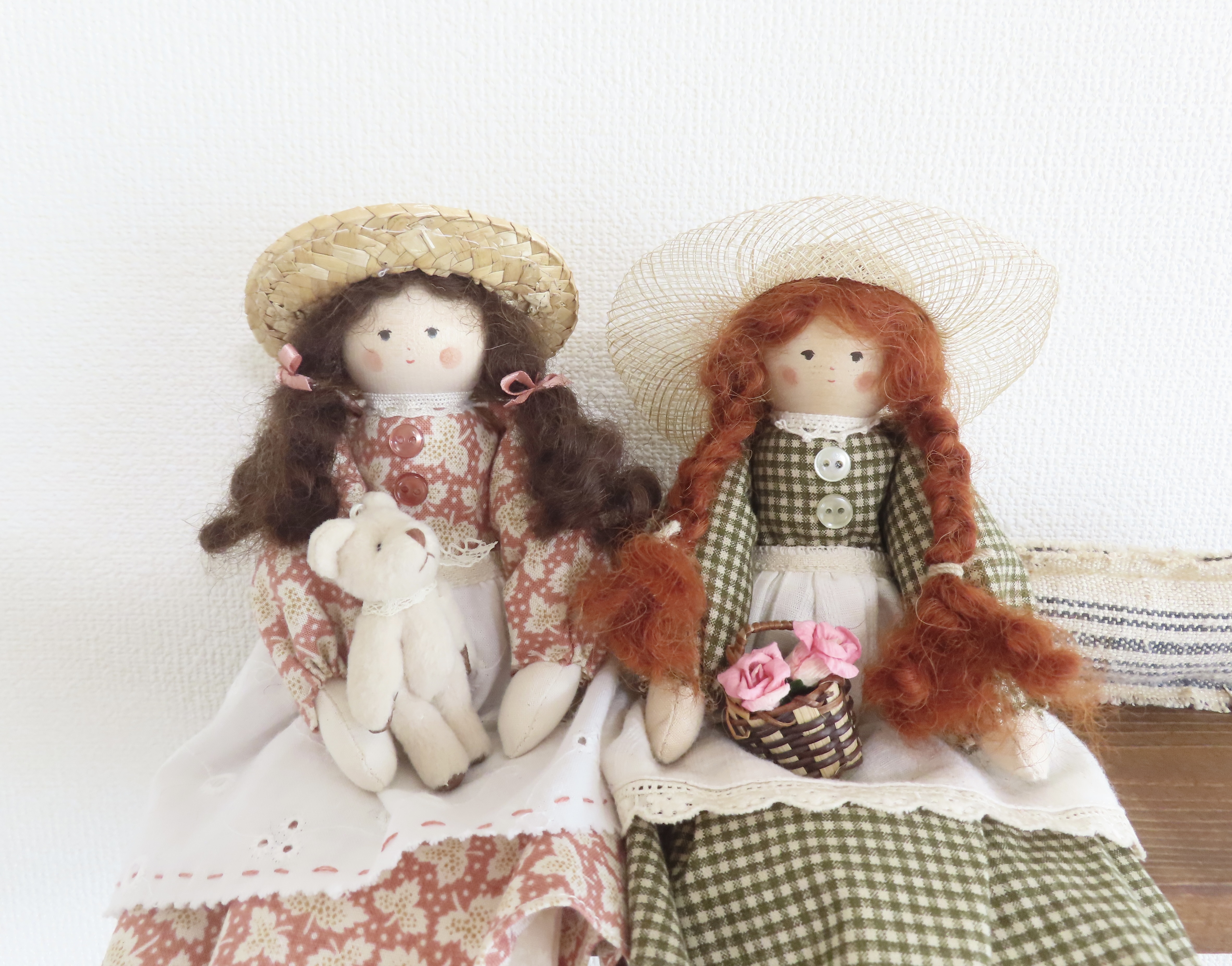 お人形の腕や足は軽く動かすことができます。(膝の部分も曲がるように作っています。)