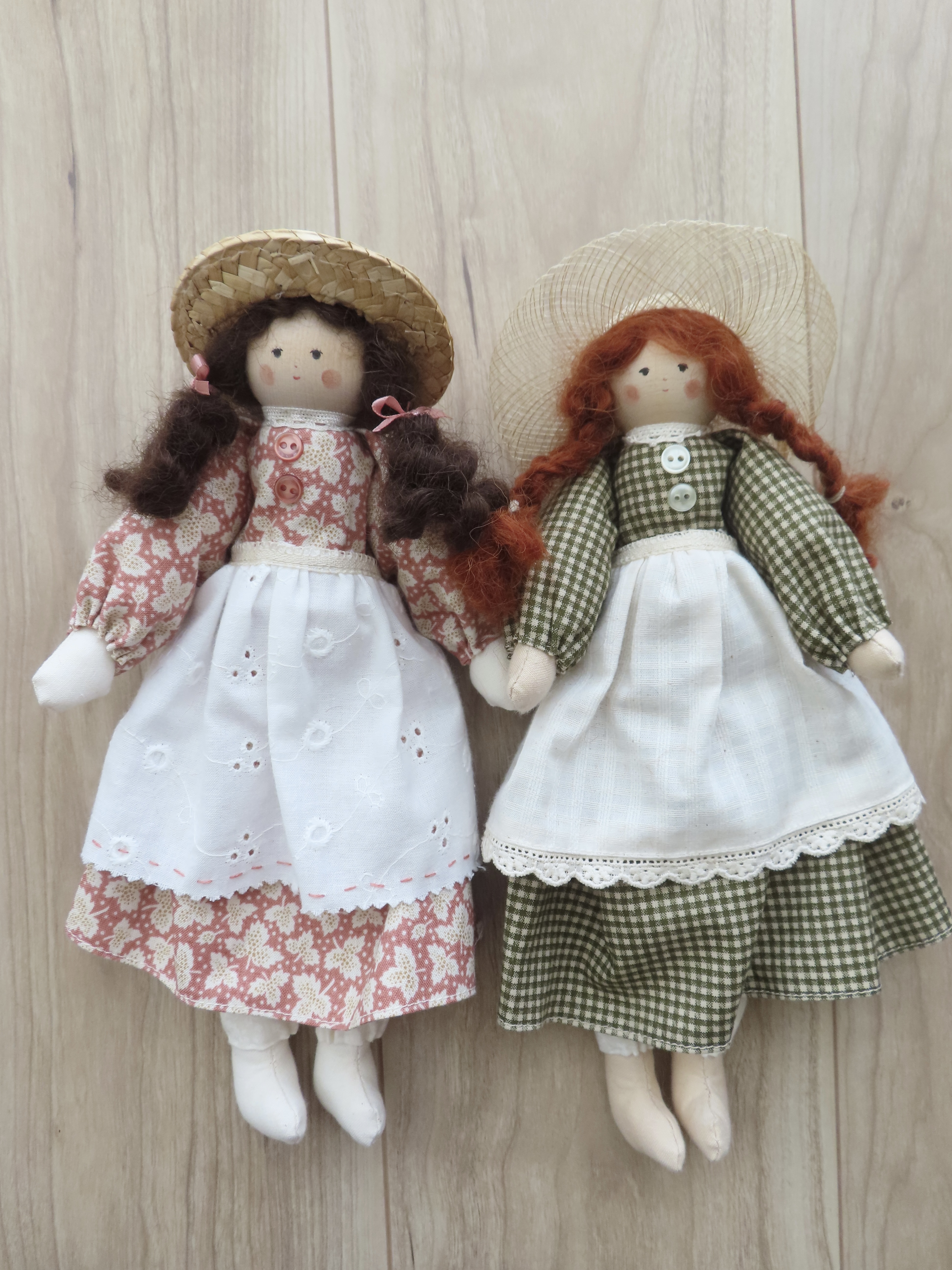 ハンドメイドの木製ドール、アンとダイアナのセットです。
